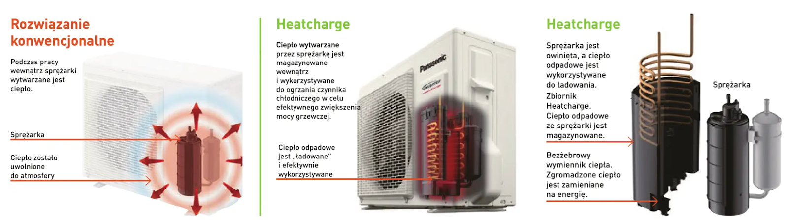 W serii Panasonic Heatcharge VZ ten efekt został praktycznie wyeliminowany. Urządzenia wykorzystują unikalny system magazynowania ciepła w wymienniku. Dzięki temu podczas defrostu klimatyzator nie przestaje ogrzewać – wykorzystuje wcześniej zgromadzoną energię, co stabilizuje jego temperaturę w nawiewie.
